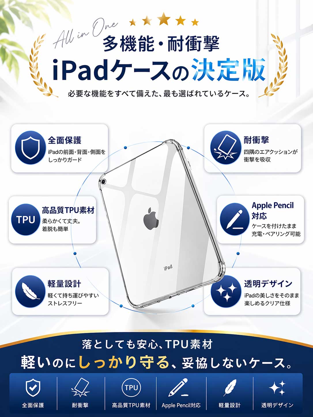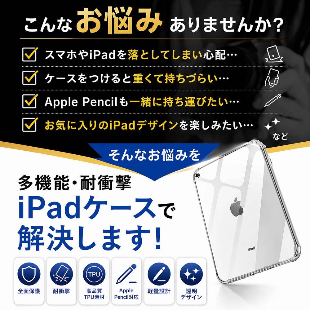 iPad ケース 透明 第11世代 10世代 iPad Air5 iPad mini6 ケース 2025 ipad Pro 11 2024 第6世代 カバー Applepen 対応