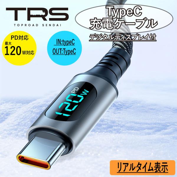 TRS type-C to type-C PD対応最大120W 急速充電 リアルタイム表示 高耐久ケーブル 1m 2m