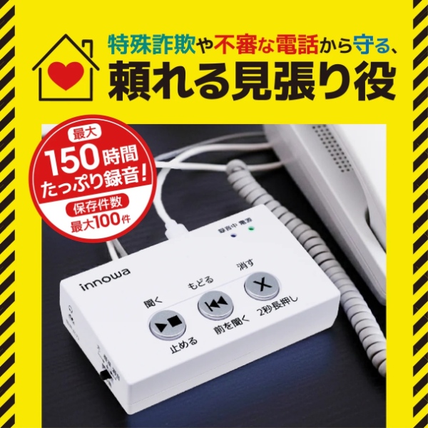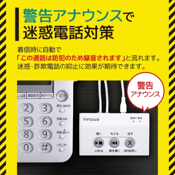 [予約 3月発売予定以降]innowa SP001 防犯あんしん電話録音機 防犯対策 振り込め詐欺/オレオレ詐欺対策 自動通話録音 簡単取り付け