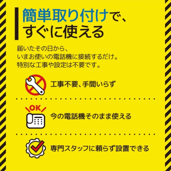 届いたその日から、いまお使いの電話機に接続するだけ。