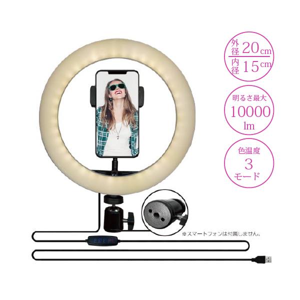 コンビニ受取可 LEDリングライト 20cmタイプ FUGU 動画撮影 自撮り用 FG-SELFL03-BK