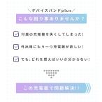 - 商品名称デバイスバンドplus 充電器適応機種3COINS (スリーコインズ) デバイスバンドplus(2413-GHW-01-000)カラーブラック商品説明3COINS デバイスバンドplus用充電器こんな困り事ありませんか?・付属の充電器を失くしてしまった!・外出用にもう一つ充電器が欲しい!・でも、どれを買えばいいか分からない!この充電器で問題解決!!選ばれる5つのポイントPoint01.ピタッと吸着、しっかり充電付属のケーブルと同様に端子の両サイドにマグネット内蔵なのでしっかりと吸着して充電を開始します。Point02.持ち運びにも丁度いい長さ全長62cmコンパクトサイズだから、くるっとまとめると、とてもコンパクトです。バッグやポーチの中でも省スペースに収納できます。Point03.使いやすい柔らかなコードコード部分の幅は約3mm。樹脂コーティングでとても柔らかいので簡単にまとめられます。狭い場所でも小回りが効く使いやすさ。Point04.買い足しやすいお手頃価格デバイスバンドplusを活用するなら、充電できる場所は複数がオススメ。好きなタイミングで充電ができるので、いつでもバッテリー切れの心配なし。Point05.無駄のないシンプルデザイン汎用品によくある、余分なロゴなどが無いシンプルなデザインなので、室内で使っていてもインテリアの邪魔になりません。商品名称デバイスバンドplus 充電器適応機種3COINS (スリーコインズ) デバイスバンドplusカラーブラック商品説明3COINS デバイスバンドplus用充電器こんな困り事ありませんか?・付属の充電器を失くしてしまった!・外出用にもう一つ充電器が欲しい!・でも、どれを買えばいいか分からない!この充電器で問題解決!!選ばれる5つのポイントPoint01.ピタッと吸着、しっかり充電付属のケーブルと同様に端子の両サイドにマグネット内蔵なのでしっかりと吸着して充電を開始します。Point02.持ち運びにも丁度いい長さ全長62cmコンパクトサイズだから、くるっとまとめると、とてもコンパクトです。バッグやポーチの中でも省スペースに収納できます。Point03.使いやすい柔らかなコードコード部分の幅は約3mm。樹脂コーティングでとても柔らかいので簡単にまとめられます。狭い場所でも小回りが効く使いやすさ。Point04.買い足しやすいお手頃価格デバイスバンドplusを活用するなら、充電できる場所は複数がオススメ。好きなタイミングで充電ができるので、いつでもバッテリー切れの心配なし。Point05.無駄のないシンプルデザイン汎用品によくある、余分なロゴなどが無いシンプルなデザインなので、室内で使っていてもインテリアの邪魔になりません。