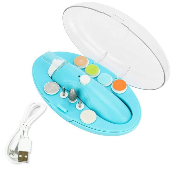 電動ネイルケア ベビー爪切り 爪やすり 静音 コンパクト設計 9種のアタッチメント付属 赤ちゃんから大人まで 男女兼用 専用ケース付き (ブルー)