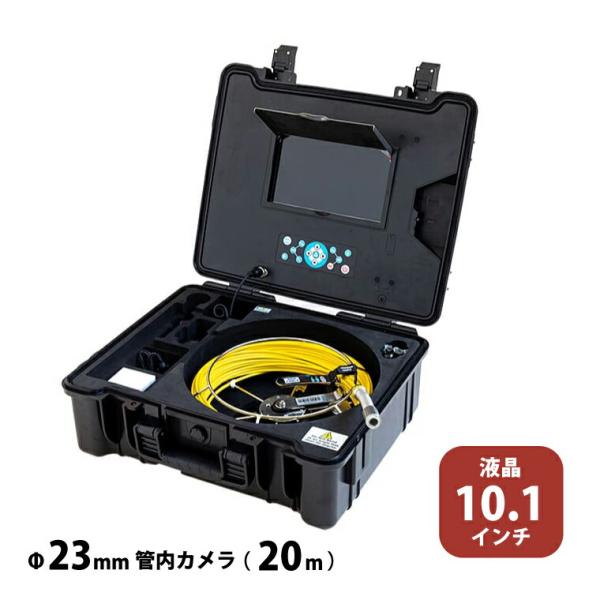 - ●見やすい10.1インチの大型モニタと視野角115度の広角レンズ、管内の位置がひと目で分かるメーターカウンターが検査品質を向上。●撮影した静止画や動画の保存も可能です。●モニタコンソール/バッテリ仕様●▼モニタサイズ:10.1インチ●▼モニタ解像度:1024×600●▼モニタ画素数:約61万画素●▼記憶媒体:SDカード(最大64GBまで、Class10以上)●▼静止画像保存形式(サイズ):JPEG(1920×1080)●▼動画保存形式(サイズ):MP4 (24fps)(1920×1080)●▼入力電圧:12V●▼入力電流:0.6A●▼バッテリ:7.2V 6400mAh リチウムイオン電池●▼動作時間(約):7時間●▼リモコン用電池:CR2032●▼動作温度:-10〜50℃●▼保管温度:-20〜60℃●▼重量(約):10〜12kg ※ケーブル長により異なります。●▼ケース材質:ABS●カメラヘッド/ケーブルホイール仕様●▼撮像素子:1/3 CMOS●▼カメラ有効画素数:1920×1080●▼カメラサイズ:外径/Φ23mm、長さ/155mm●▼視野角:115°●▼被写界深度(約):20mm〜●▼光源:白色LED・15灯・調光(4段階)●▼ケーブル長:20m●▼防水防塵:水深20mまで ※カメラヘッドケーブルホイールが隙間なく密着している状態で●▼材質:先端ガラス部/サファイアガラス、カメラハウジング/ステンレス●▼エルボ回数:適正内径/Ф50〜200mm、内径/Ф45mmで90°のエルボを3回通過可能