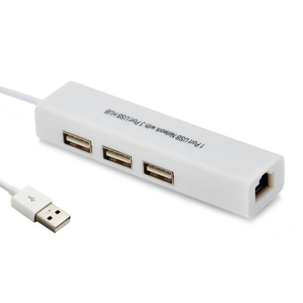 【並行輸入品】USB2.0ハブ 3ポート 有線LANアダプタ付き 500mA 10/100Mbps(定形外郵便、送料別商品)