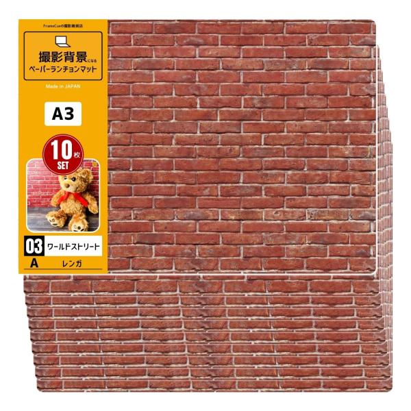 FrameCue 10枚セット 03ワールドストリートAレンガ(1柄×10枚)撮影背景になるペーパーランチョンマット A3 背景紙 ペーパーランチョンマット 撮影