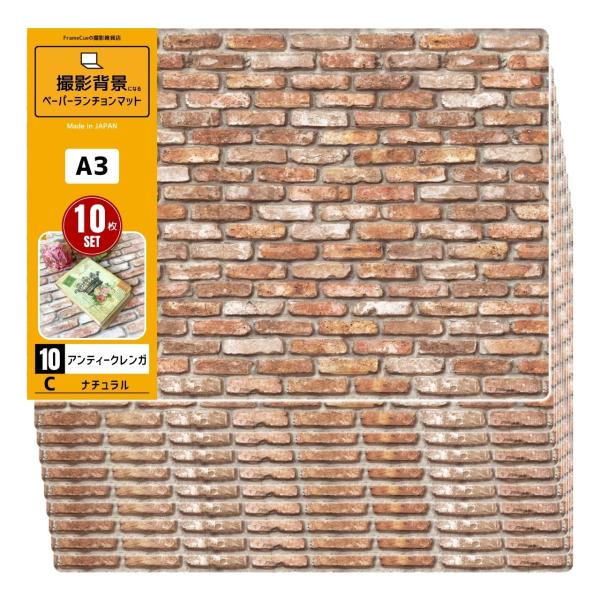 FrameCue 10枚セット 10アンティークレンガCナチュラル(1柄×10枚)撮影背景になるペーパーランチョンマット A3 背景紙 ペーパーランチョンマット 撮影
