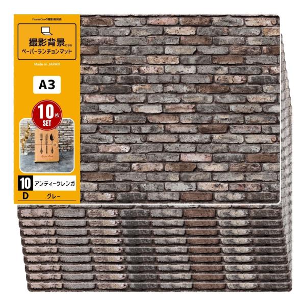 FrameCue 10枚セット 10アンティークレンガ Dグレー(1柄×10枚)撮影背景になるペーパーランチョンマット A3 背景紙 ペーパーランチョンマット 撮影