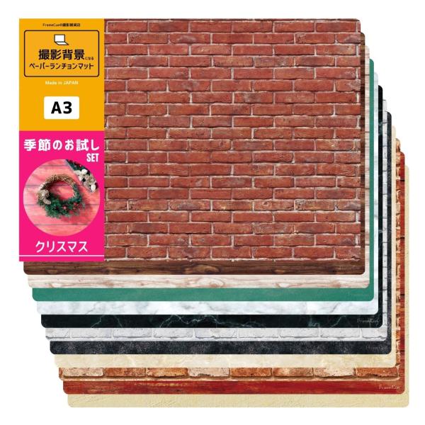 FrameCue 季節のお試しセット クリスマスおすすめ12柄(12柄×各1枚)撮影背景になるペーパーランチョンマット A3 背景紙 ペーパーランチョンマット 撮影 背景