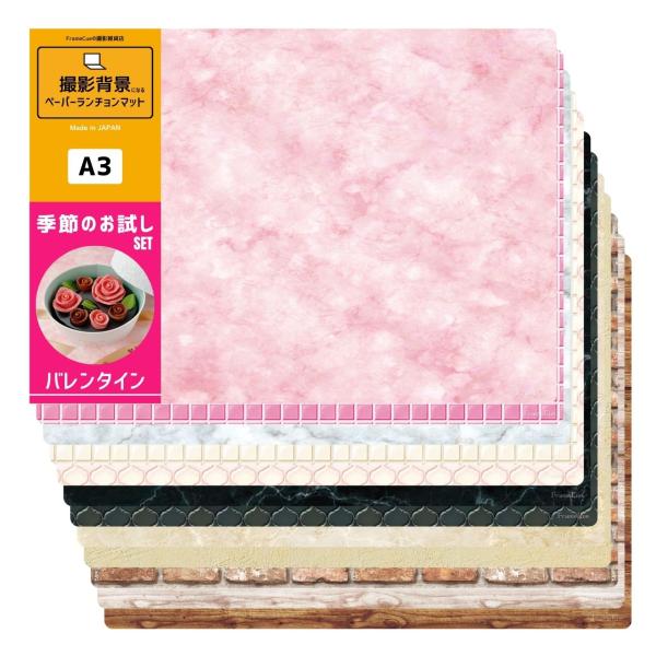 FrameCue 季節のお試しセット バレンタインおすすめ12柄(12柄×各1枚)撮影背景になるペーパーランチョンマット A3 背景紙 ペーパーランチョンマット 撮影