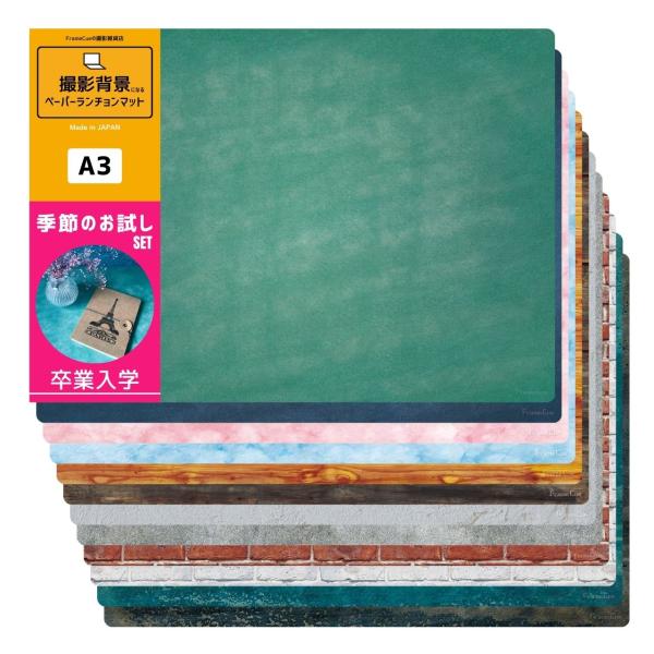 FrameCue 季節のお試しセット 卒業入学シーズンおすすめ12柄(12柄×各1枚)撮影背景になるペーパーランチョンマット A3 背景紙 ペーパーランチョンマット 撮影