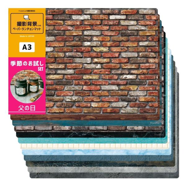 FrameCue 季節のお試しセット 父の日おすすめ12柄(12柄×各1枚)撮影背景になるペーパーランチョンマット A3 背景紙 ペーパーランチョンマット 撮影 背景