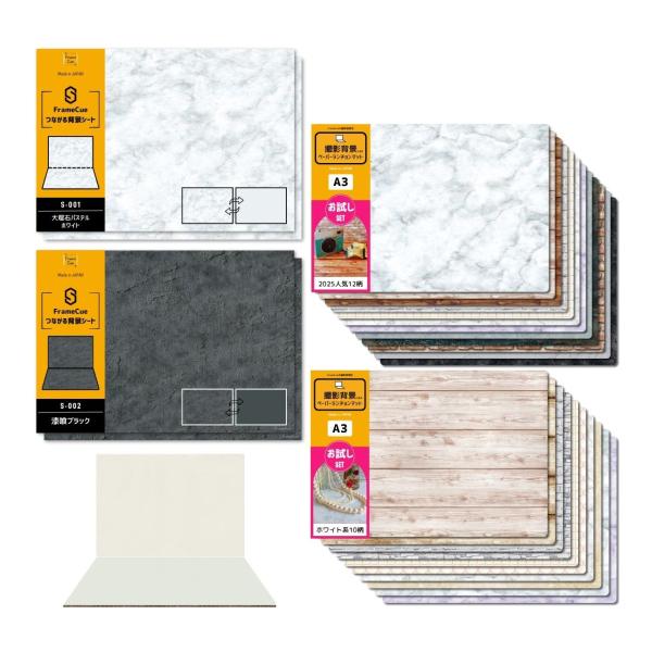MIX5点セット 撮影背景紙 FrameCue A3 つながる背景シート 撮影背景になるペーパーランチョンマット フォト背景 ハンドメイド 推し活 ディスプレイ おまけ付