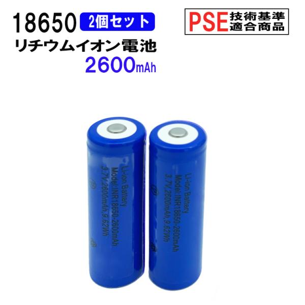 18650 リチウムイオン充電池 2本セット 3.7V 2600mAh PSE 保護回路付き 突起あるタイプ 充電電池 3.7V9.62Wh バッテリー 送料無料