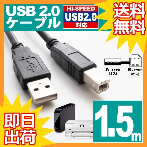 USBケーブル 1.5m USB2.0 ブラック A-Bタイプ タイプA タイプB TypeA TypeB ハイスピード スタンダード USB A-TYPE