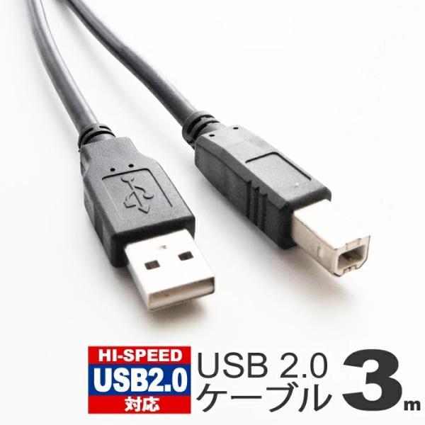 - USBケーブル 3m USB2.0 ブラック ハイスピード スタンダード USB A-TYPE (オス) - USB B-TYPE (オス) プリンUL.YN