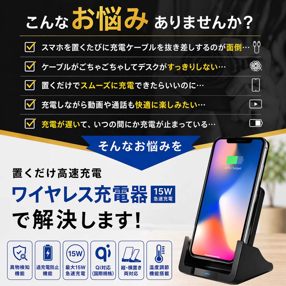 ワイヤレス充電器 iPhone Android 15W 10W 置くだけ スマホ 充電器 Qi 急速充電 iPhone17 Air 16 15 アイフォン アンドロイド両用