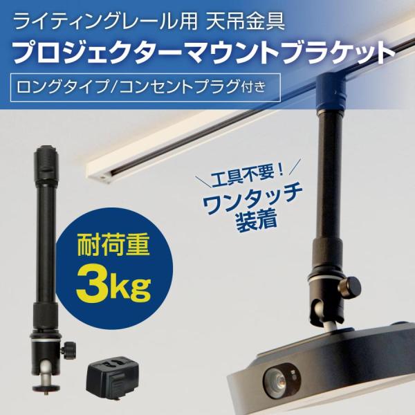 プロジェクター 天吊金具 ダクトレール ライティングレール用 耐荷重3kg ブラック シングルロック 伸縮シャフト コンセントプラグ付き PMB-L300LB-CPB