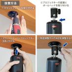 プロジェクター背面に三脚用のネジ穴(1/4インチネジ)が用意されていれば、簡単に天井に吊り下げ可能。(※耐荷重は3kg以下)テープルや三脚を立てる手間とスペースを解消!天井吊りならもっと大きく、天井への投影もできます。 球状ヘッド利用で上下左右に約80度傾き、360度回転可能なので、プロジェクターはどんな向きにも対応します。【注意】※ご購入前に本製品を設置する場所の下地をご確認ください。
