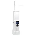 - 災害や非常時の情報収集に便利な防災ラジオが登場! ラジオ機能のみならず、デジタル時計やSOSアラート・調光LEDライトの機能を搭載した コンパクトな防災ラジオになっています。 手回し充電にも対応していますので、バッテリー切れや電力供給がない場所でも安心して使うことができます。 寸法:幅69.5mmx高さ237.9mmx奥行き58.5mm 重量:約380g 充電方式:ハンドクランク(手回し)充電(本体背面にハンドクランク収納/1分間に130回転推奨)/ USB充電(本体底部Type-C充電端子) ラジオ:FM: 76~108MHz AM:522~1620kHz(最大音量での動作:約5時間) スピーカー出力: 3W SOSアラート :ハイビーム点滅+アラーム音(70dB)(動作時間:約3時間) イヤホン端子:3.5mmステレオミニジャック(イヤホン接続時はSOS機能オフ) ハンドクランク充電:1分間に130回転でラジオ約30秒動作、ハイビーム約1分間動作 USBポート:出力端子:USB Type-A (5 V±0.5V、900mA±100mA) 充電端子:USBType-C (5 V±0.5V、充電時間:約3~5時間) 付属品:スタンド・USBケーブル・取扱説明書