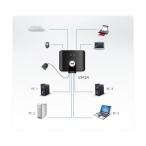 - ATEN 4ポートUSBデバイス共有器【US424】 4ポートUSBデバイス共有器 US424は、コンピューター4台でUSBデバイス4台(キーボードやマウス、その他のUSBデバイス)を共有することのできる、4ポートUSBデバイス共有器です。 複数のコンピューターでUSBデバイスを共有できるため、コンピューターごとにデバイスを用意する必要がありません。 また、ケーブル一体化デザインでマルチメディアを利用するオフィスの環境において、理想的な形でUSBデバイスの共有を実現します。 ・USBポートを4ポート搭載 - 雑然としたケーブルをすっきりさせる一体型デザイン ・4台のコンピューターで4台のUSBデバイスを共有 - USBキーボードやマウス、周辺機器を共有可能 ・リモコンでポート選択できるため、製品本体は離れたところに置くことが可能 ・USB 2.0準拠 ・マルチプラットフォーム対応 - Windows、Linux、Mac、Sun ・ポートの選択状況はLEDランプで表示 ・過電流保護機能 ・バスパワー(オプションでUSB電源アダプターをサポート) ・ホットプラグ対応 機能 US424 コンピューター接続数 4 ポート選択方法 リモコン コネクター コンピューター側 USBタイプAオス×4 デバイス側 USBタイプAメス×4 電源(オプション) USBミニBタイプメス×1 ケーブル長 USBケーブル 1.2m×2 1.8m×2 リモコン 1.8m LED 選択 グリーン/オレンジ×2 電源仕様 USBバスパワー ※電力不足の場合は、フロントのUSBポートから給電可能です。 (USBケーブルは別途お求めください。) 動作環境 動作温度 5〜40℃ 保管温度 -20〜60℃ 湿度 0〜80%RH、結露なきこと ケース材料 プラスチック 重量 240g サイズ(W×D×H) 78×111×25mm