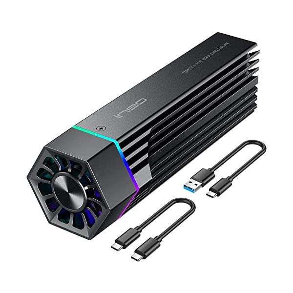 商品名:ineo M.2 PCIe NVMe SSD外付ハードドライブケース 書き込み防止機能 効果的な放熱のアルミデッキ サーマルパッドに付く ファンが内蔵 7色のRGBライトUASP及びTrim指令に対応 [C2605 NVMe]