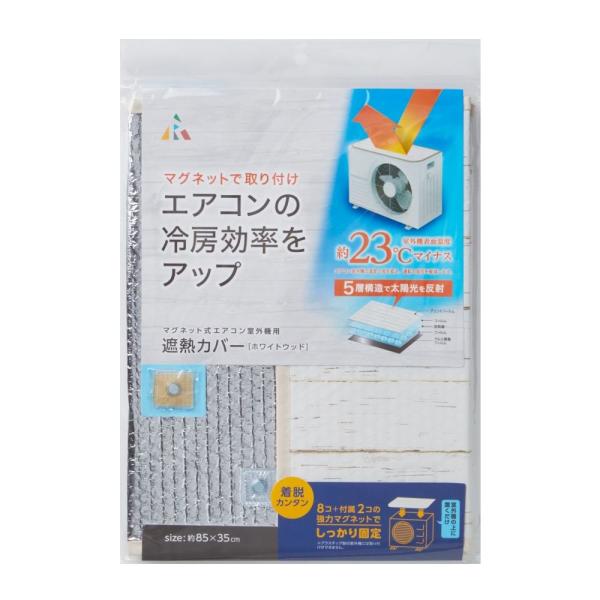 訳あり アール マグネット式 エアコン室外機用 遮熱カバー ホワイトウッド 85×35×0.3cm HN-092