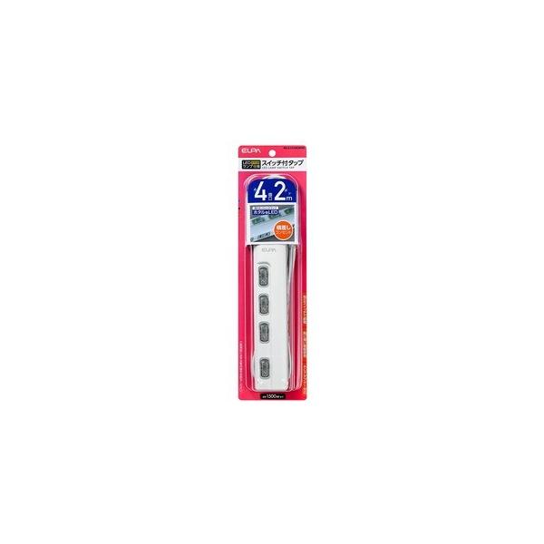 朝日電器 スイッチ付タップ LEDランプ 横挿し 4個口 ホワイト 2m WLS-LY42EB(W) 1