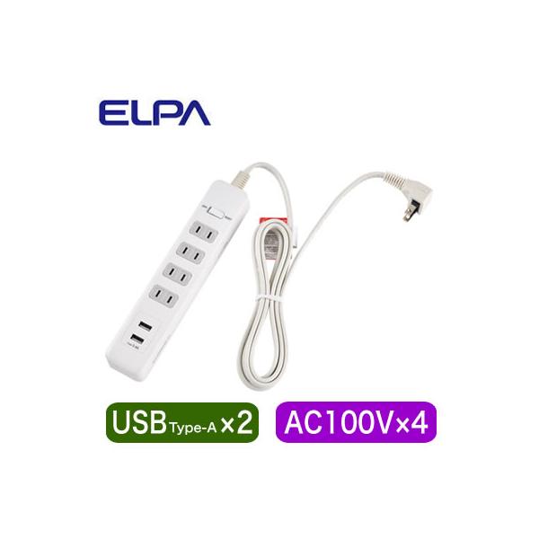 WLS-4232BUA(W) 集中スイッチ付USBタップ4P TypeA:2ポート、コンセント4個口 耐雷サージ機能付 ELPA 朝日電器 電設資材 配線機器