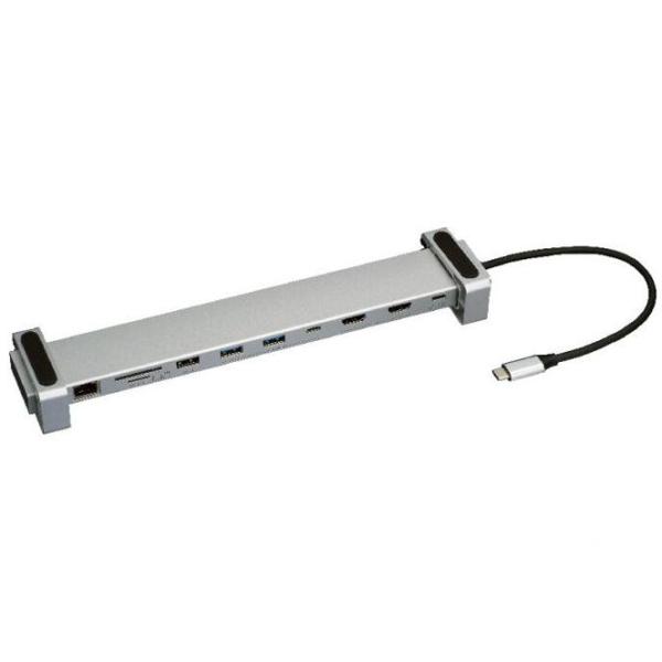 - ナカバヤシ UD-C06SL PD対応 Type-C 10in1 PCスタンドドッキングステーション シルバー発売日:2024年2月中旬●モニター2台に繋がり、ノートPCスタンドになる。10in1 4Kデュアルモニター対応●USB PD100W※電力の一部を製品内部で消費するため、100Wの充電器に接続した場合95W程度の給電になります。●映像出力やLAN接続まで、周辺機器を一括接続HDMIやカードリーダー、LAN、PD充電器、USB変換ハブが1つになり大変便利です。●ケーブル収納(ケーブル長:約20cm)取り外し可能なスタンドパーツを使用する事で、持ち運びの際にケーブルを収納することができます。●ノートPCスタンド付属のスタンドパーツ使用でPCスタンドに。傾斜をつけ、負荷の少ない角度でタイピング。 【仕様】本体寸法:スタンド装着:W269×D380×H32mm本体重量:スタンド装着:約175g本体寸法:スタンド非装着:W269×D380×H15mm本体重量:スタンド非装着:約129gUSB規格:ver.3.2Gen1(3.1Gen/3.0)、2.0インターフェース:アップストリーム(PC側)Type-C(オス)、ダウンストリーム(接続機器側)Type-A メス(USB3.2Gen1)×2、Type-Aメス(USB2.0)×1、 Type-C メス(USB3.2Gen1)×1 ※Alternate Modeには対応していません。Type-Cメス×1 PD充電専用対応機種:Type-C搭載機器対応OS:Windows11,10/macOS10.15以降/chromeOS電圧・最大供給電流:5V720mA最大転送速度:5Gbps(理論値 USB3.2Gen1ポート)PD最大電力:100W ※電力の一部を製品内部で消費するため、100Wの充電器に接続した場合95W程度の給電になります。電源:バスパワー映像出力:コネクタ:HDMI(タイプA 19pin)メス×1、対応解像度:最大4K/30Hz、HDCP:1.4対応カードリーダー:SD、SDHC、SDXC、microSD、microSDHC、microSDXC スピードクラス〜Class10LAN規格:IEEE802.3(10BASE-T)/IEEE802.3u(100BASE-TX)/IEEE802.3ab(1000BASE-T)/IEEE802.3x(Flow control)LAN通信速度:10/100/1000Mbps(理論値)LANコネクタ形状:RJ-45(Auto MDI/MDI-X)×1ポート、Auto-Negotiation対応適合LANケーブル:カテゴリー5e以上のLANケーブル(1000BASE-T)、カテゴリー5以上のLANケーブル(100BASE-TX)