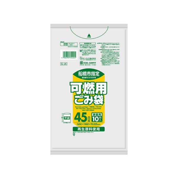 日本サニパック(sanipak) 船橋市 可燃用ごみ袋 45L 半透明 10枚 0.025mm 【品番:GJ4】