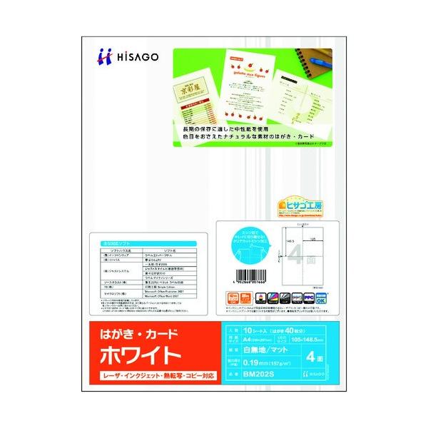 ヒサゴ はがき・カード 4面/ホワイト BM202S