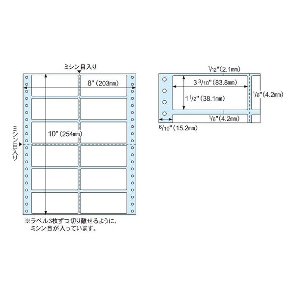 - 【仕様】●12面●シートサイズ:203×254mm●ラベルサイズ:83.8×38.1mm●厚さ:0.17mm●面付:2列6段●材質:上質紙●対応プリンタ:ドットインパクトプリンタ <ジェットプライス>