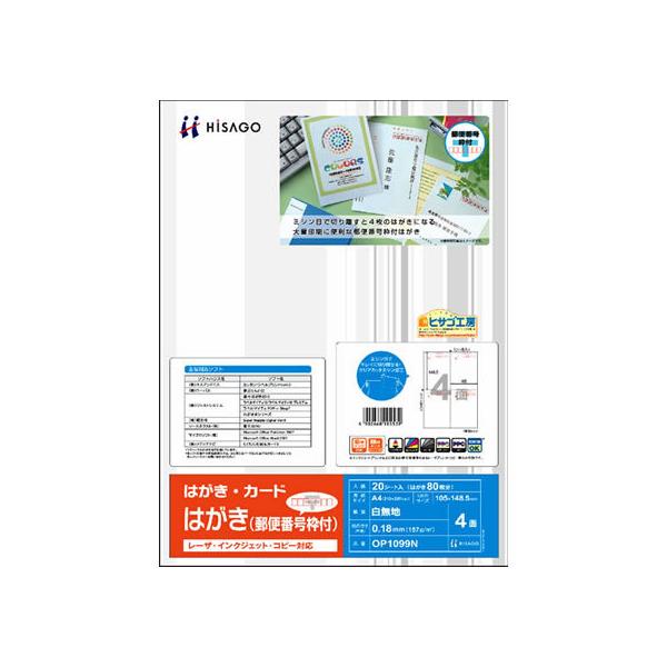 ヒサゴ はがき 郵便番号枠付 4面 OP1099N はがき用紙 コピー用紙