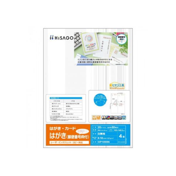 ヒサゴ はがき(郵便番号枠付) 4面 20枚 OP1099N |b03