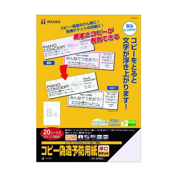 ヒサゴ コピー偽造予防用紙 厚口 チケット 8面 OP2421