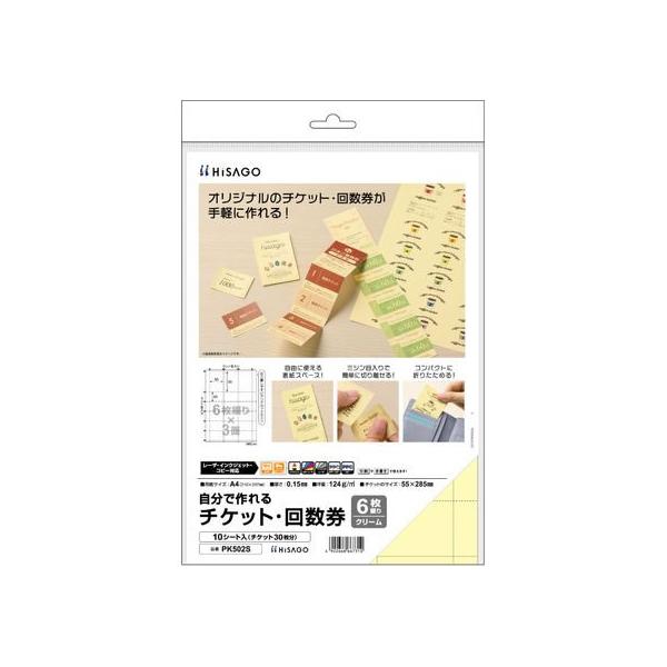 【お取り寄せ】ヒサゴ 自分で作れるチケット・回数券 6枚綴り クリーム PK502S