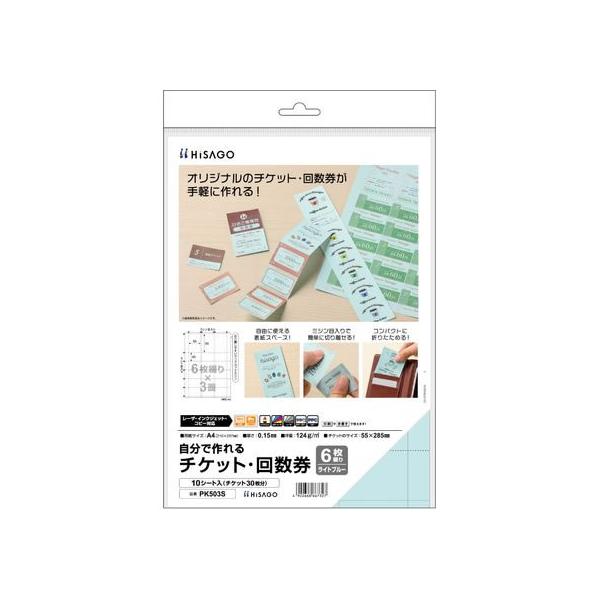 【お取り寄せ】ヒサゴ 自分で作れるチケット・回数券 6枚綴り ブルー PK503S