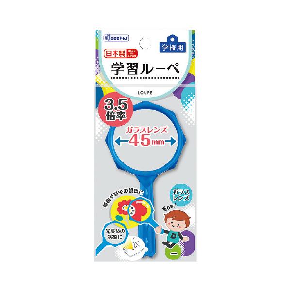- デビカ 学校用 学習ルーペ ブルー 073208 レンズ3.5倍率 ガラスレンズ45mm 光集め 植物 昆虫 観察に 日本製 虫メガネ 虫眼鏡 虫めがね DBK W57×D9×H115mmパッケージサイズW75×D10×H170mm 30g商品サイズW57×D9×H115mmレンズの大きさ45mm材質PEレンズ倍率3.5倍特徴 子供たちの学習や自然観察に最適なツールとしておすすめです。3.5倍拡大ガラスレンズ高品質なガラス製レンズを採用し、3.5倍の倍率で対象物を鮮明に観察できます。直径45mmのレンズサイズ直径45mmのレンズは、広い視野を確保し、詳細な観察をサポートします。軽量で持ちやすいデザイン本体サイズは幅57mm×奥行9mm×高さ115mm、重量30gと軽量で、小さな手でも持ちやすい設計です。光集め機能太陽光を集めることができ、理科の実験や観察活動に役立ちます。メーカー希望小売価格はメーカーカタログに基づいて掲載しています。こちらの商品は同一商品5個までをゆうパケット1個口分の送料に設定しています。