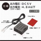 DC12V車専用・出力電圧:DC5V・出力可能電流:MAX4.8A(2ポート合計)・本体消費電流:1.5A(出力最大時)