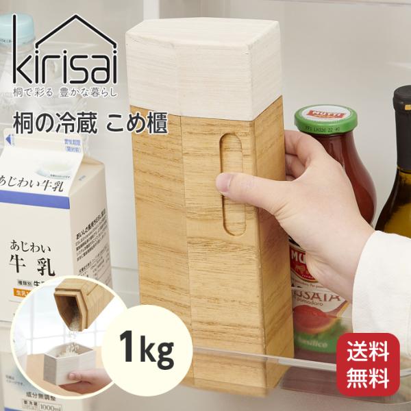 kirisai 桐の冷蔵こめ櫃 1kg 米櫃 米びつ こめびつ 保存容器 日本製 木製 桐製 水洗いOK 省スペース 冷蔵保存
