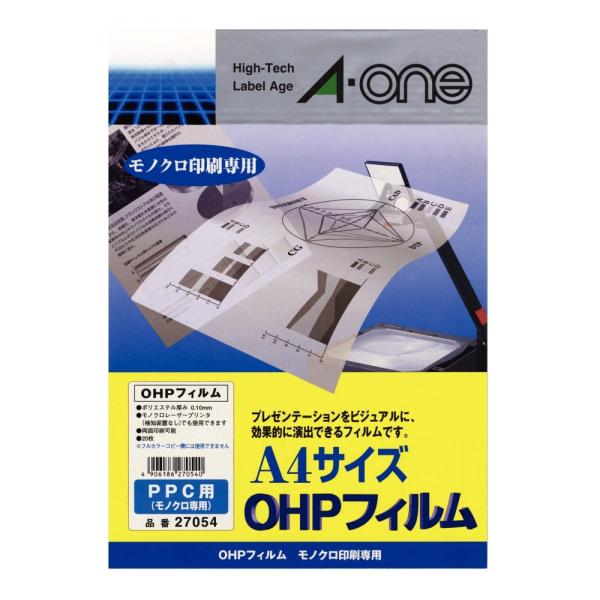- ★モノクロコピー機、モノクロレーザープリンターに対応■20枚入り■メーカー:エーワン■品番:27054■入数:20枚■フィルムサイズ:210×297mm(A4)■フィルム厚:0.1mm