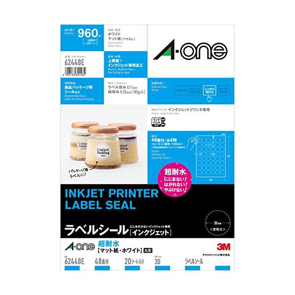 エーワン ラベルシール 82448 インクジェット 超耐水 マット紙 丸型 A4 48面 20シート 一片サイズ 30mmφ