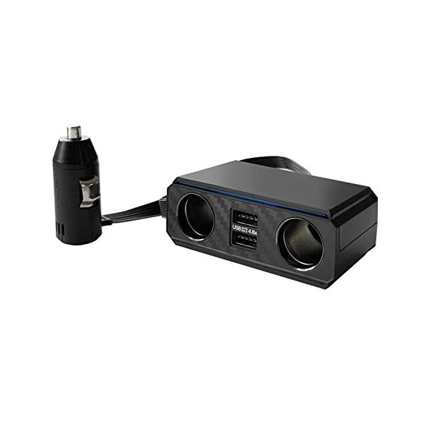 - 自動識別IC:接続した端末を識別し、最適な出力を自動的に判定して充電、iPhone/iPad、スマートフォン/タブレット等の様々な端末を同時に2台充電可能 ブルーに輝くラインのインジケーターで通電確認可能 ブラックメッキリングとカーボン調のスタイリッシュなデザイン 約1mのフラットコードで自由な取り回し 12V車専用/DCソケット2口合計6Aまで、USBポート最大出力2口合計4.8Aまで
