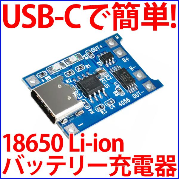 18650バッテリー リチウムイオン充電池用 充電器 充電ボード USB-C入力で簡単便利!! IC制御で簡単・安全♪
