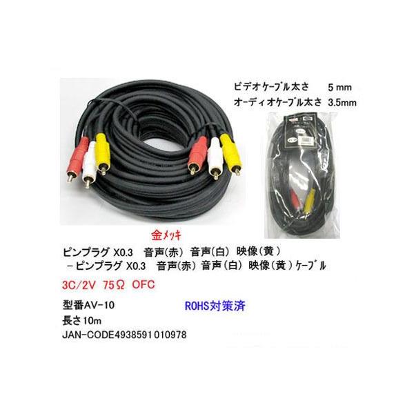 AV-10 AVケーブル RCAピンプラグx3(黄/赤/白) 10m