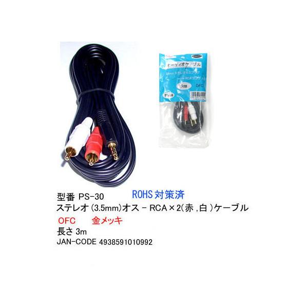 3.5mmステレオプラグ(オス)⇔RCA(赤/白)/オス変換ケーブル/OFC/金メッキ/3m (3C-PS-30)