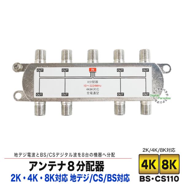2k 4k 8k対応 アンテナF型(入力)→アンテナF型(出力)x8