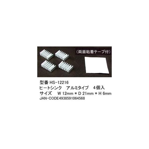 【COMON】アルミ製ヒートシンク W12mmxD21mmxH6mm 粘着テープ付 4個セット 【HS-12216】