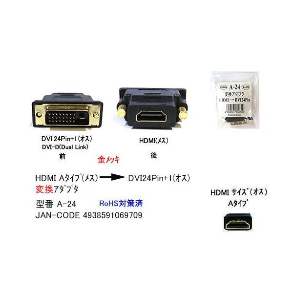 HDMI Aタイプ メス → DVI 24Pin +1 メス 変換コネクタ DA-A-24 旧型番 24M-19F